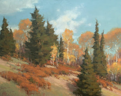 Painting backlit snow is very difficult, as I discovered today. It is troublesome to judge color or value when one is looking into something so bright. I think I have exhausted this subject for a while, and will try something else tomorrow. The ice was cracking all around me as I was painting this, but I managed to stay dry. This view is looking the opposite direction from the one I painted yesterday. The colors look better in person than they do here on this post. Overall, it was a magical day, yesterday's heavy fog combined with a zero Fahrenheit overnight temperature creating a thick flocking on everything in the valley. A very gentle breeze blew the crystals into the air where they seemed to hover and sparkle like diamonds in the sunshine against the deep blue sky. It was very Doctor Zhivago. Study 6x8 oil on linen.